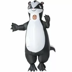 El producto incluye: El disfraz hinchable con ventilador integrado (Requiere de 4 baterías AA no incluidas). Tiene bolsillo externo para tener a mano tu movil y cartera!Este disfraz de niños está disponible en talla única y le queda a la mayoria de niños. Altura recomendada 120 cm a 155 cm. Por favor, diríjase a la gráfica para más información de las tallas.Disfraz cómodo de llevar, resistente y de excelente calidad.Cierres elásticos y ventilador de alta potencia,que asegura más de 4 horas de duración para que se mantenga inflado.Apto para uso de niños: El disfraz cumple con las normativas de seguridad de UK y UE. Certificado de CE aprobado. Perfecto disfraz hinchable de mofeta gigante para carnavales, fiestas temáticas de animales. Ideal para Halloween, cosplay de la famosa mofeta enamorada y mucho más!