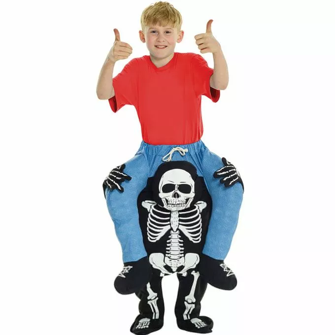 El producto incluye: El disfraz a caballito. Este disfraz de niños está disponible en talla única y le queda a la mayoria de niños. Altura recomendada 120 cm a 155 cm. Por favor, diríjase a la gráfica para más información de las tallas.Disfraz cómodo de llevar, resistente y de excelente calidad. El disfraz a caballito cubre solo las piernas (Toma solo 1 minuto el rellenarlo usando papel, toallas o cualquier otro material). Apto para uso de niños: El disfraz cumple con las normativas de seguridad de UK y UE. Certificado de CE aprobado. Perfecto disfraz de esqueleto a caballito para Halloween y fiestas temanticas de terror. Ideal para eventos escolares, cosplay de huesos y calavera.